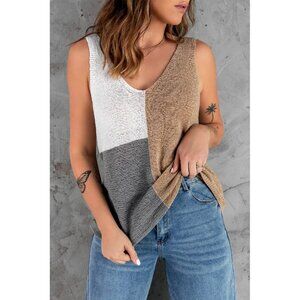 Feature: Summer V neck tank tops.Crew neckline, sleeveless, color block casual loose fit, unique color block/striped pattern,soft material,casual tank tops is chic and never out of date.
