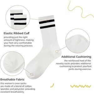 Anti-Odor & Breathable: The crew socks for women are made of a blend of cotton, spandex and polyester, providing excellent breath ability; During the entire day of wearing, sweat can be quickly excreted, thus maintaining dryness and preventing odor