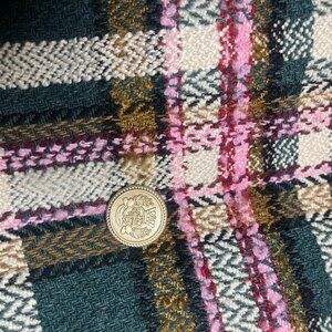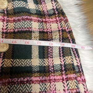 Product Details : Golden buttons trimming - Plaid pattern - Concealed zip closure on the right side- Inner shorts lining - 60% Wool, 40% Polyester - Hand wash cold