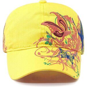Women Yellow Adjustable Breathable Embroidered Sport Golf Outdoor Baseball Caps