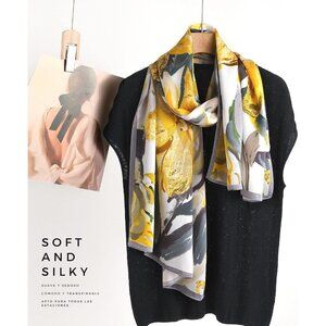 🆕 Women Yellow Mulberry Silk Long Scarf Large Oblong Shawl Head Neck Hair Wrap