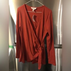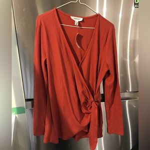 Beautiful Wrap blouse with side ring closure. Stretch material