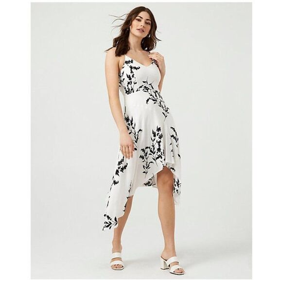 Women Le Chateau Floral Print Pebbled Crêpe V-Neck Black & White Dress S…