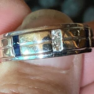 Women’s 10 carat white gold , diamond and saphire ring