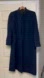 Heavy weight navy wool coat with leather trim on shoulders and neckline. Size 8 .Marie France of Montreal designer. Stay warm and stylish with this elegant navy coat.