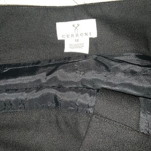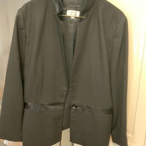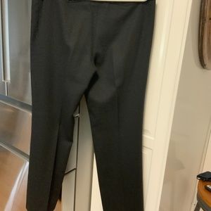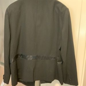 2 pc. Black wool lined, pant suit. Jacket is size 14, pants are size 12. Jacket has a statin trim collar with a middle satin strip. Pants are clean from and back no pockets. Pant inseam is approximately 28 1/2”