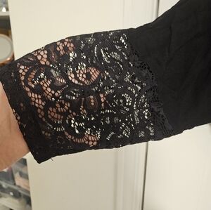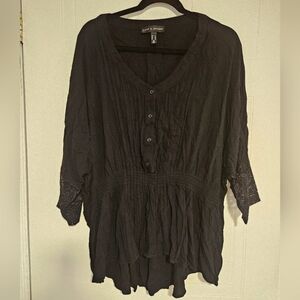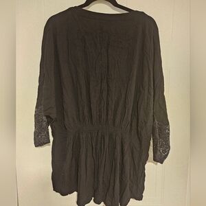 Womens 2X plus size shirt boho peasant black blouse lace 3/4 sleeve stretchy