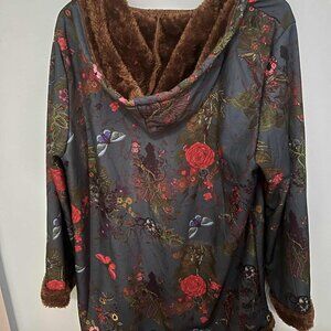 Women’s 2XL Floral Hooded Coat – Fleece Lined Button Front Winter Jacket