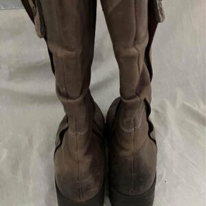 Good used condition, writing on bottom of soles Clark’s women’s leather boots side zippers size 7 with wedge heel 1 1/2”