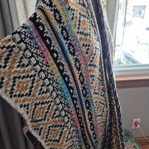This 70s vibe poncho is a true retro statement piece, capturing the free-spirited essence of the era. Crafted with a blend of soft, cozy materials, it features a bold geometric pattern in earthy tones, evoking the iconic style of the '70s. The relaxed, flowy fit drapes effortlessly over your shoulders, offering comfort while exuding that effortless bohemian flair. Perfect for layering over your favorite outfits, this poncho channels vintage charm with a modern twist, making it a versatile addition to any wardrobe. Ideal for adding a touch of nostalgic style to both casual and dressy looks.