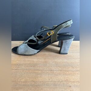 Women’s 70’s Vintage Amalfi by Rangoni T-Strap Block Heel Leather Grey Shoes