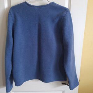Soft, warm and cuddly fleece zippered jacket with button and applique designs. 100% Polyester. 25" from shoulder to hem.