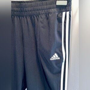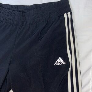 Women’s Adidas stretchy waist black white stripes Capri crop pants Sz medium