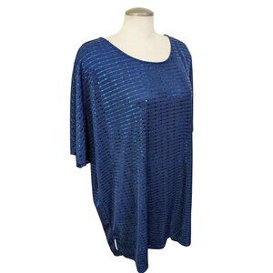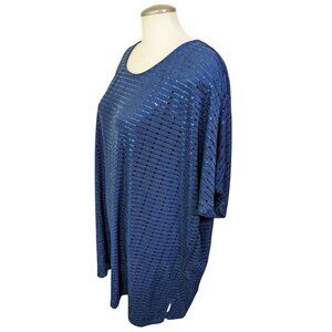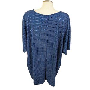 Womens All Over Sequin Plus 3X Stretch Short Sleeve Tunic Navy Blue Sparkle