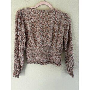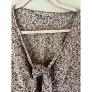 Women's American Eagle Floral Tie Front Smocked Crop Top M