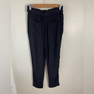 Womens Anthropologie Cartonnier Black Paperbag Tapered Leg Crepe Pants Pockets XS