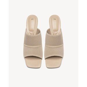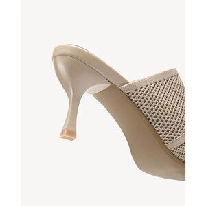 Women's Apricot Mesh Square Open Toe Commute Slip On Stiletto Heeled Slides