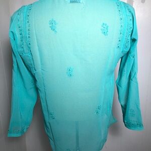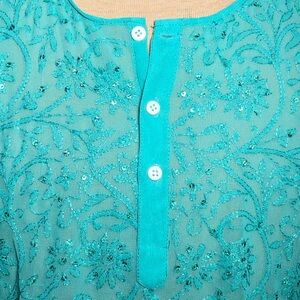 - Womens Aqua Blue & Sequins Sheer Top. Small