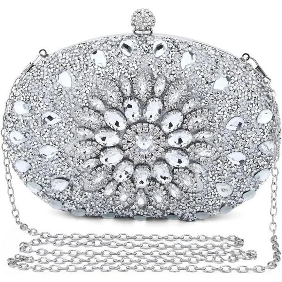 Large Enough Evening Bag: the dimensions of the evening bag are 21 x 5 x 16.5 cm (length x width x height). This women's rhinestone evening bag interior is perfect for small mobile phone, lipstick, handkerchiefs, keys, small mirror, small makeup, credit card and some small items.