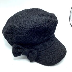 Women's Baker Boy Fiddler Beret Tweed Hat with Leopard Print Inside and a Bow on the right side. Like New! Completely covers your head and protects your eyes from rain or snow.