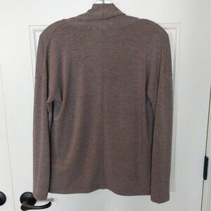 Women's Banana Republic size XS cardigan. Color is light brown. Worn twice, like new condition. Measurements: length from armpit to sleeve = 16.5", length from armpit to hem = 16.5", length from shoulder to hem approximately 23". Flat measurements: across waist = 19.5", across hem = 19.5", from armpit to armpit = 21.5".
