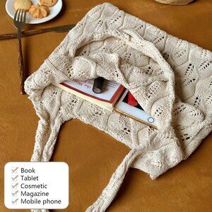 【Summer Beach Bag Tote】The knitted shoulder bag is crafted from high quality polyester fabric using flat knitting process, ultra soft in hand, lightweight, simple and durable. Adorned with a cute summer hollow design and unique texture, the gorgeous trendy exterior adds a touch of sophistication and vintage flair to any outfit.