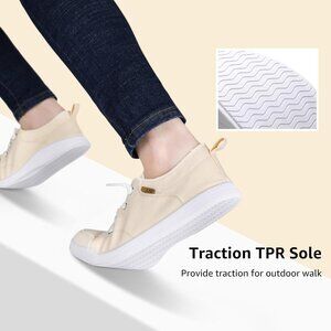 Ultra lightweight and breathable fabric for a light, airy feel Arch Support Insloe and Traction Outsole: Casual low-top shoes have a built-in soft cushioning insole, easy to wash, provides comfy cushioning all-day. The rubber outsole has a non-slip design to provide higher balance and stability.