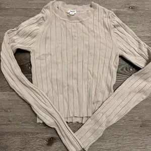 Women's Beige Ribbed Top
