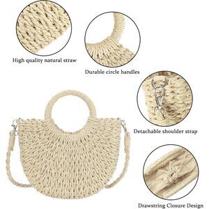 Unique Chic Design: Features a half moon structured shape, circle handles and a drawstring closure, this woven straw handbag is a perfect accessory that adds a touch of styles to your spring and summer look.