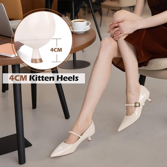 All-Day Comfort :Walk confidently on a 4cm low kitten heel designed for stability. Microfiber footbeds cushion every step, while flexible rubber soles ensure lightweight support and slip-resistant traction.