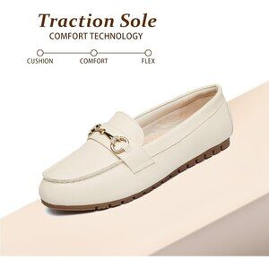 Women's Beige pu Faux Leather Arch Support Casual Slip on Comfort Penny Loafers