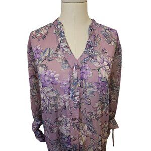 Womens Bellina Purple Floral Blouse Long Sleeve Sheer Summer Cottage Sz XL