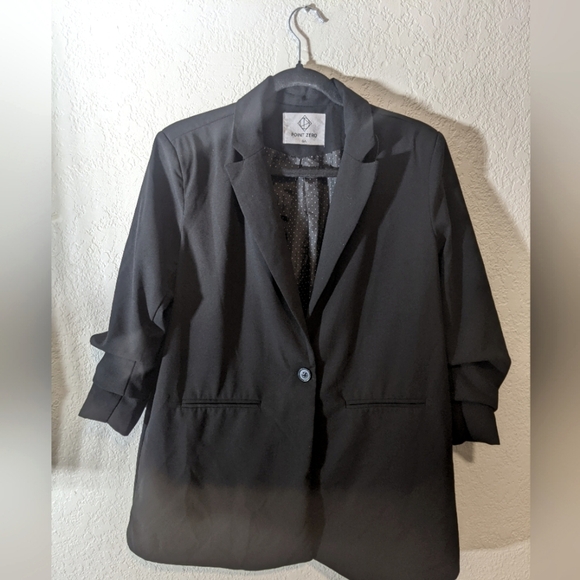 Elevate your style with this sleek black blazer. Perfect for any occasion, it offers a sophisticated look for business, or partially undone with that perfect pair of Levi's. NWOT. OBO.