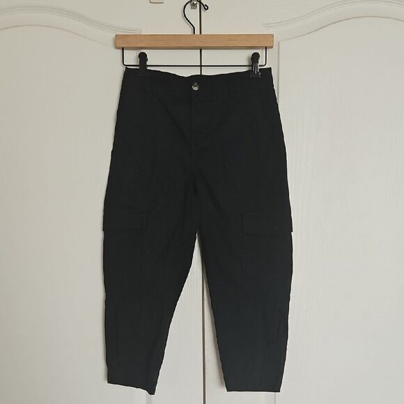 Women's Black Cargo Capri Cotton Pants