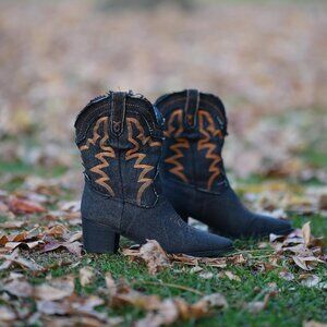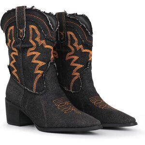 🆕 Women's Black Denim Embroidered Western Rodeo Boots Pointed Toe Cowgirl