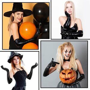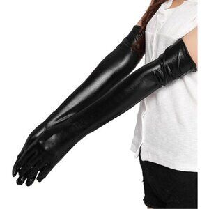 Women's Black Faux Leather Sexy Wet Look Nylon Adult Latex Long Gloves