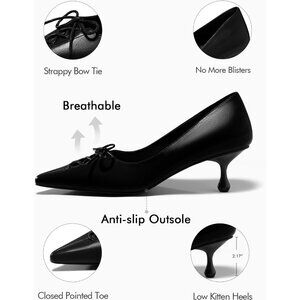 Comfort Low Kitten Heels: 2.17-inch kitten heel combines the elegance of a high-heeled shoe with comfort