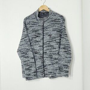 Women's Black & Gray Marled Long Sleeve High Neck Full Zip-Up Comfy Sweater