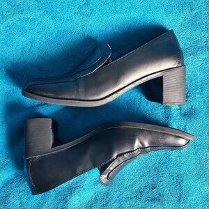 A pair of beautiful semi-chunky heel leather loafers in very good condition. Couldn't find the size anywhere but measured from heel to front and it's 24.5 cm, which is equivalent to 8 or 8.5 according to shoe websites.