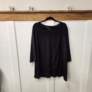 Women's Black Top Tunic with Lace overlay, Soft Material with Lace Overlay