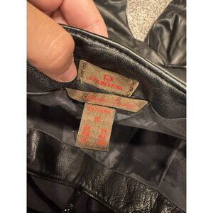 Elevate your style with these sleek black leather pants. Perfect for any occasion, they offer a chic and modern look.