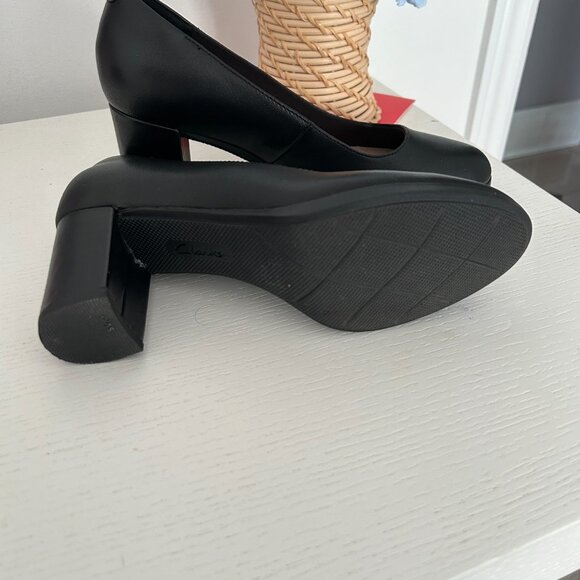 Clarks Womens Black Leather Pump.