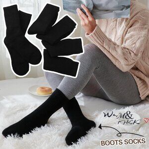 Women's Black Merino Winter Thermal Thick Warm Hiking Crew Cozy Comfy Work Socks