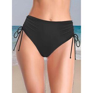 🆕Women’s Black Nylon High Waisted Bikini Bottoms Ruched Tummy