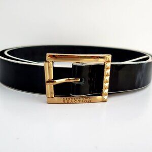 Women's Black Patent Belt KENNETH COLE White Trim Faux Leather Office Career