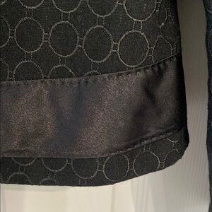 The quality is excellent with subtle details that differentiate this jacket as a high end piece. The subtle pattern, ribbon tie detail and satin panel at the waist is a nod to style and class while remaining understated.