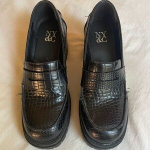Super cute women's platform loafers. Stacked heel, sort of a faux-alligator synthetic material.