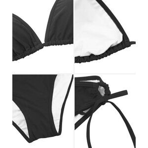🆕Women's Black Polyester Halter Triangle Bikini Set Tie Side Bottom Two Piece
