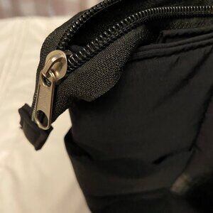 Very chic black quilted shoulder bag with many storage pockets.