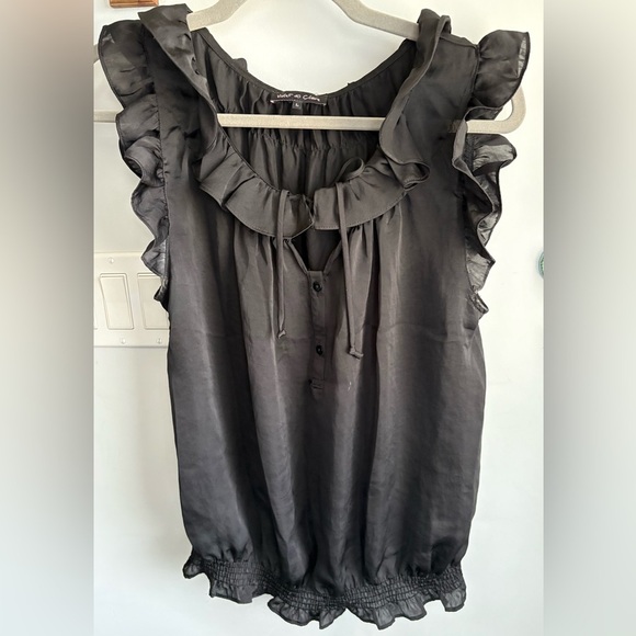Elegant black ruffle top perfect for any occasion. Features a stylish design with a comfortable fit.